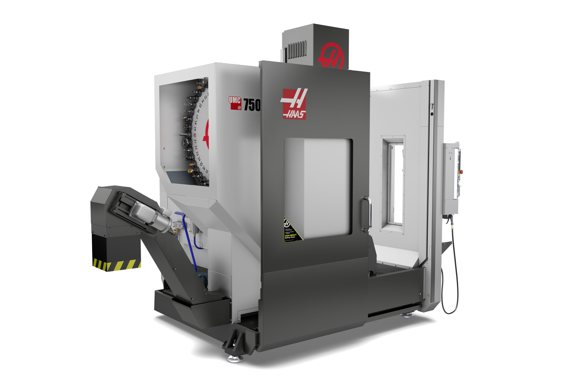 5-osni vertikalni obradni centar; 762 x 508 x 508 mm, sa integrisanim 2-osnim rotacionim stolom, konus 40, 22,4 kW, 8100 o/min, linijski direktni pogon, 40+1 bočni mjenjač alata, brzina 30,5 m/min, poravnanje vretena, makroi, rotacija i skaliranje koordinata, bežične intuitivne sonde.